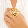 waterproof parel ring in verguld staal met glanzend oppervlak.