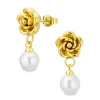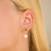 waterproof bloem oorbellen in verguld staal met glanzend oppervlak 2 witte parels.