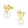 waterproof hart oorbellen in verguld staal met glanzend oppervlak 2 witte parels.