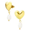 waterproof hart parel oorbellen in verguld staal met glanzend oppervlak 2 witte synthetische parels.