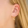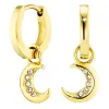 waterproof maan zirkoon creool in verguld staal met glanzend oppervlak en facetgeslepen witte zirkoon.