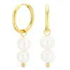 waterproof parel creool in verguld staal met glanzend oppervlak 4 witte synthetische parels.