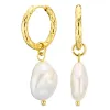 waterproof parel creool in verguld staal met glanzend oppervlak 2 witte synthetische parels.
