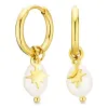 waterproof parel creool in verguld staal met glanzend oppervlak 2 witte synthetische parels.