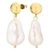 waterproof parel oorbellen in verguld staal met glanzend oppervlak 2 witte synthetische parels.