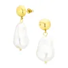 waterproof parel oorbellen in verguld staal met glanzend oppervlak 2 witte synthetische parels.