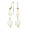 waterproof parel oorbellen in verguld staal met glanzend oppervlak 4 witte synthetische parels.
