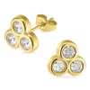 waterproof zirkoon oorsteker in verguld staal met glanzend oppervlak en 6 facetgeslepen witte zirkonen.