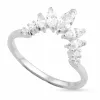 verzamelmonster zirkoon ring in zilver met glanzend oppervlak en 9 facetgeslepen witte zirkonen.
